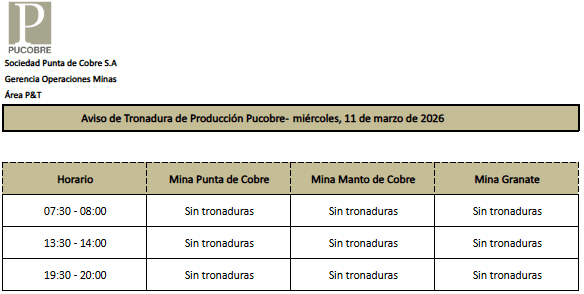 AVISO DE TRONADURAS DE PRODUCCIÓN PUCOBRE / MIÉRCOLES 11 DE MARZO DE 2026