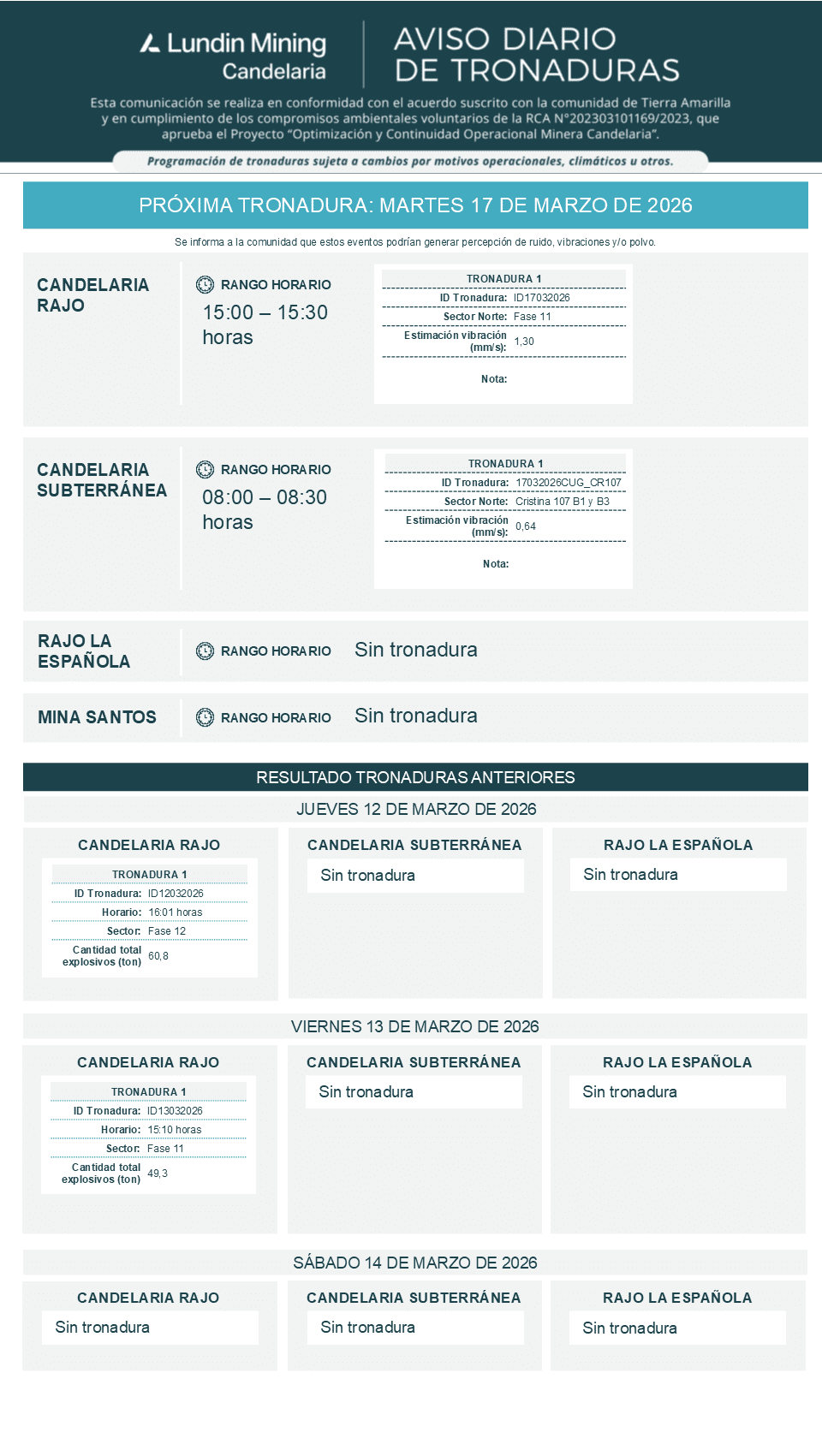 INFORMATIVO DE TRONADURAS DISTRITO CANDELARIA / MARTES 17 DE MARZO DE 2026