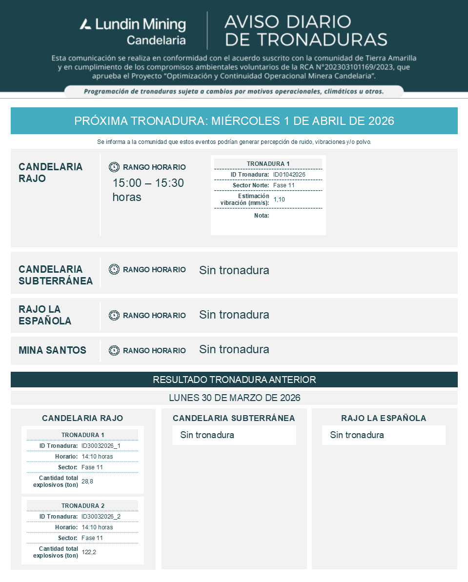 INFORMATIVO DE TRONADURAS DISTRITO CANDELARIA / MIÉRCOLES 1 DE ABRIL DE 2026