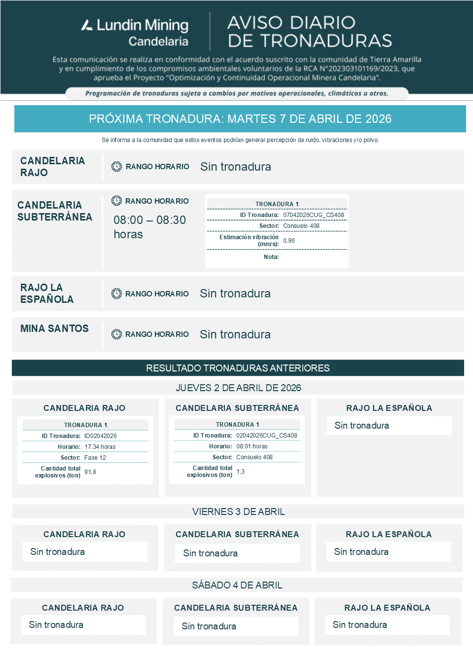 INFORMATIVO DE TRONADURAS DISTRITO CANDELARIA / MARTES 7 DE ABRIL DE 2026