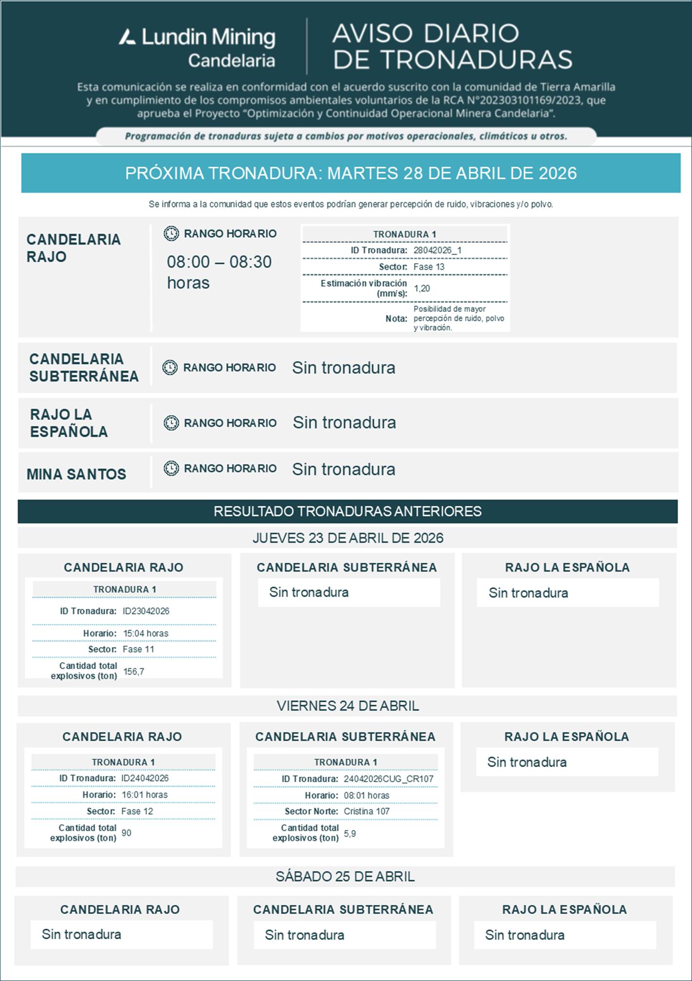 INFORMATIVO DE TRONADURAS DISTRITO CANDELARIA / MARTES 28 DE ABRIL DE 2026